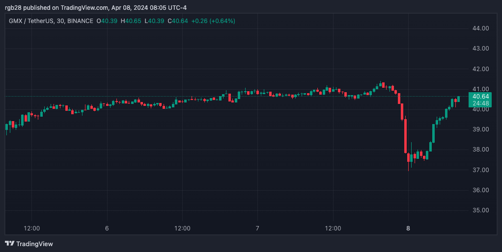 Despite the initial setback, the altcoin bounced back effectively. The current price of GMX is at $40.47, representing a minimal decrease of 1% compared to 24 hours prior. Impressively, its market activity surged by an astounding 467.6%, resulting in a substantial daily trading volume of $54.77 million.