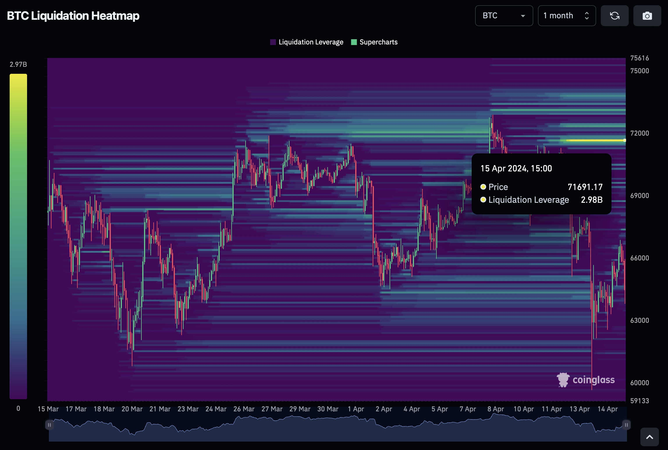 Based on information from CoinGlass, a trusted source for derivative market data, Rover identifies the $71,600 mark as significant. If Bitcoin reaches this price, Rover predicts a $3 billion short position liquidation will ensue.