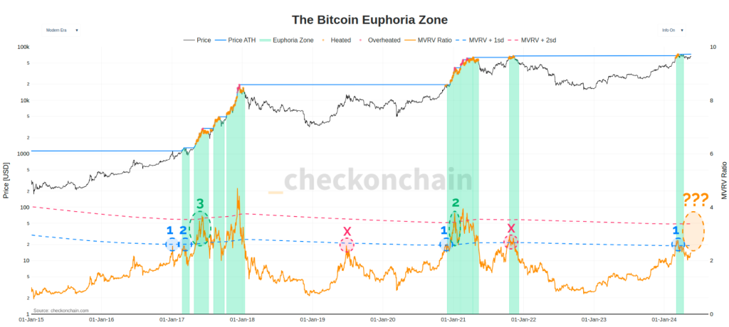 The theory behind Checkmate’s analysis relies on the Market Value to Realized Value (MVRV) ratio for Bitcoin. This metric calculates the current market value of all Bitcoins against the total amount paid to acquire them. Historically, when this ratio surpasses one standard deviation above its average, it has frequently indicated the start of a “Euphoric Bull” phase in the market.